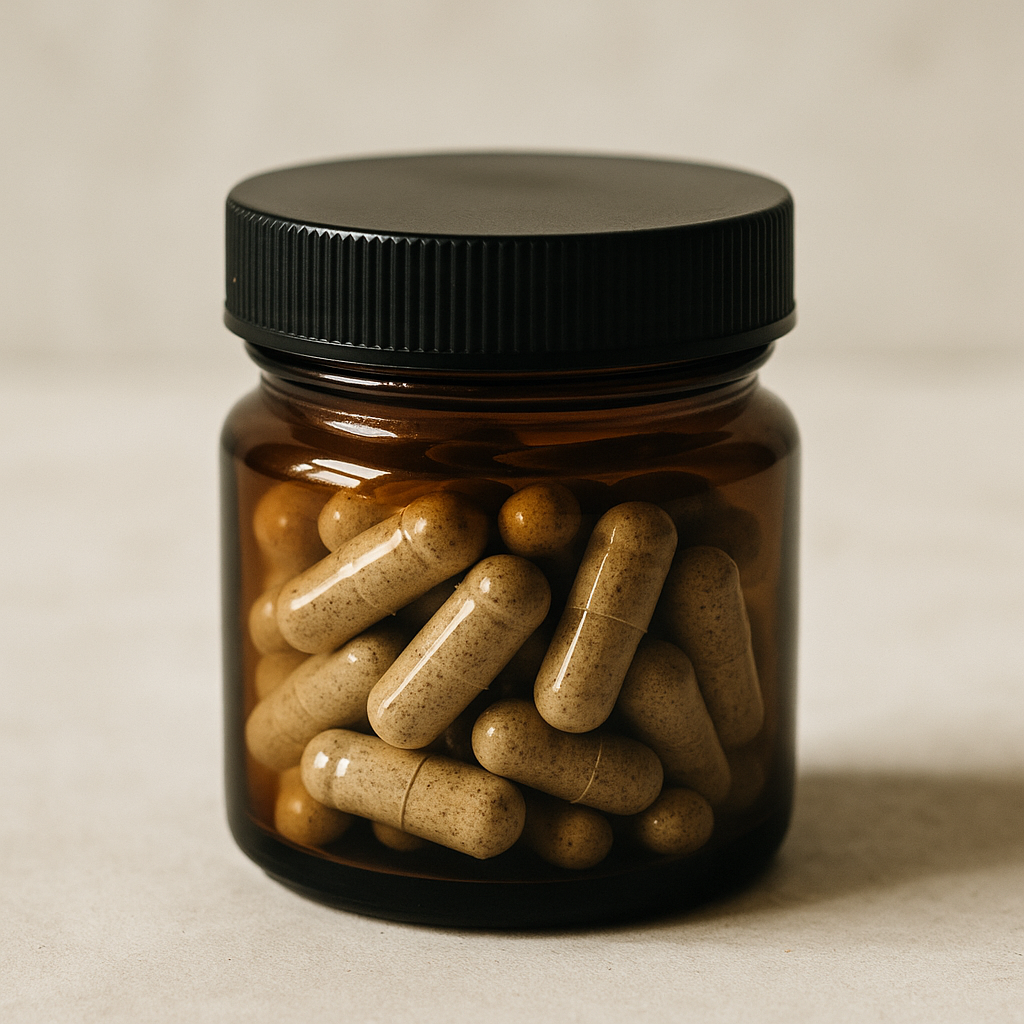 Cada cápsula contiene una dosis cuidadosamente medida, lista para integrarse a tu rutina de manera segura y discreta. El frasco de vidrio ámbar protege la calidad del contenido contra la luz y el calor, manteniendo la frescura y potencia de cada cápsula.